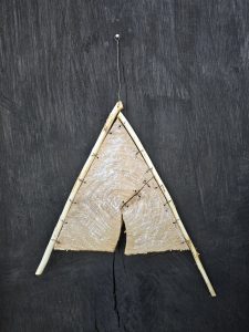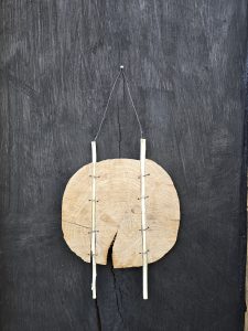 Op een landje van Rijkswaterstaat aan de IJssel in de buurt van Kampen. Hakte en zaagde ik van eiken dukdalven Poort III in het derde jaar van de academie 1985. Nu jaren later wou ik hem weer eens zien, voelen. Kleiner weliswaar maar nog steeds intens en overweldigend… de kracht van hout.